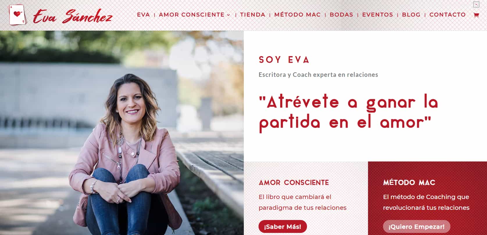 Páginas WebEva Sánchez | Escritora y Coach Eva Sánchez es oficiante de bodas, coach experta en relaciones, autora del libro Amor consciente, conferenciante y pionera del Método MAC. Ver Página WebBoletínSubscríbete para conseguir información de interésAcepto las Condiciones de Privacidad.Δ¿Quieres contactar conmigo? Contáctame